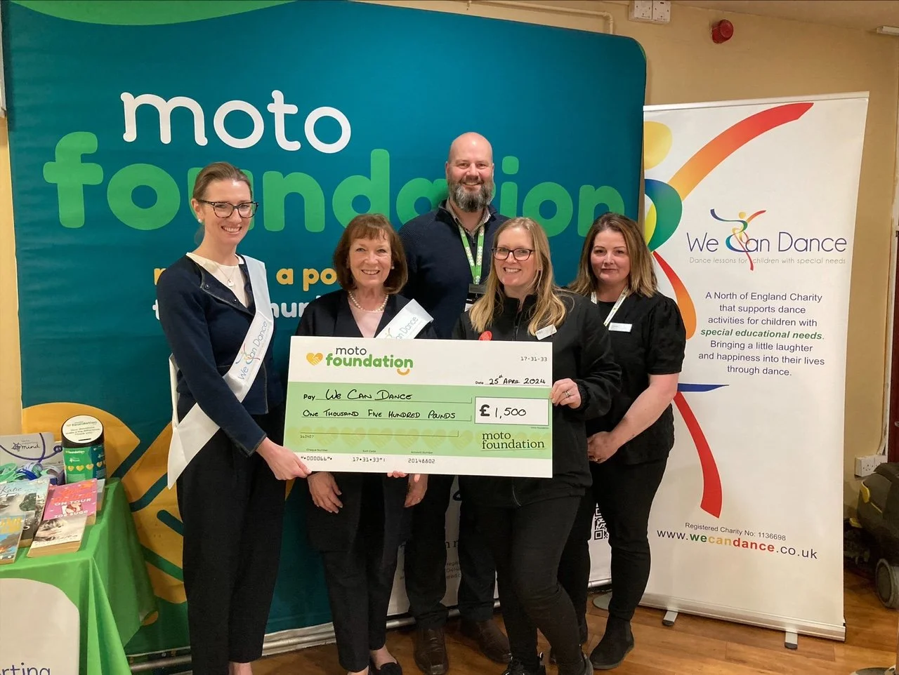 We were absolutely delighted to be awarded a grant of £1500 from The Moto Foundation in April. Yvonne Nicholson (chair) Emma Howells (School Liaison) received the cheque from Stephen Snowdon, Operational Manager of Moto Scotch Corner and Barton. Huge thanks to Jess Parker and Diane Catterick, Moto employees, who supported our application which was critical to its success. This money will benefit many children at The Dales School (Morton-on-Swale) and Mowbray (Bedale). It will enable us to continue our work delivering weekly professional dance lessons to them. The benefits are tremendous and will stay with the children into adulthood.